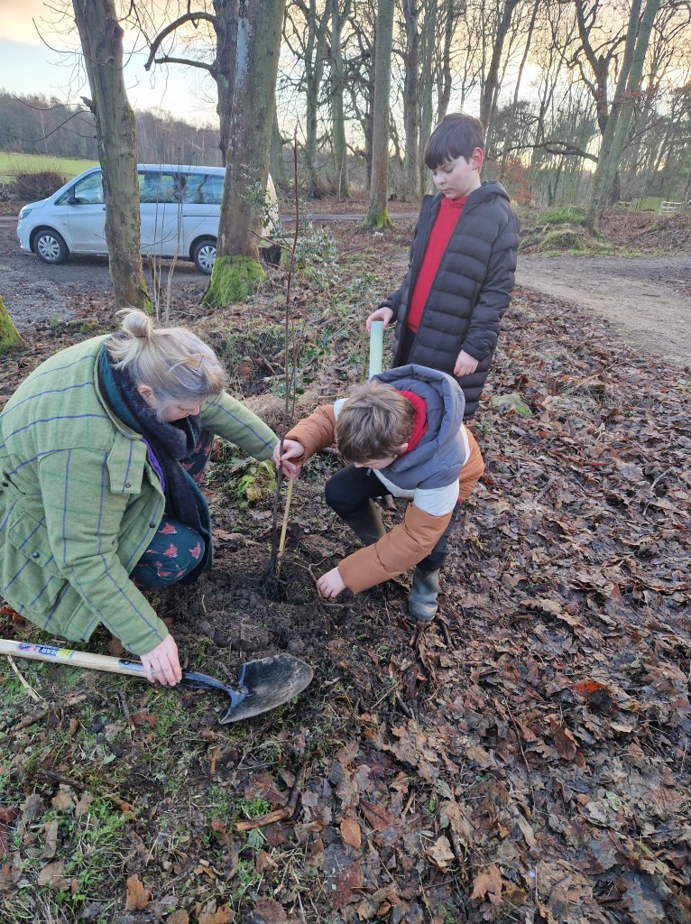 We were invited to plant trees with the Milton Community Woodland Group. P4-7 went along to help.