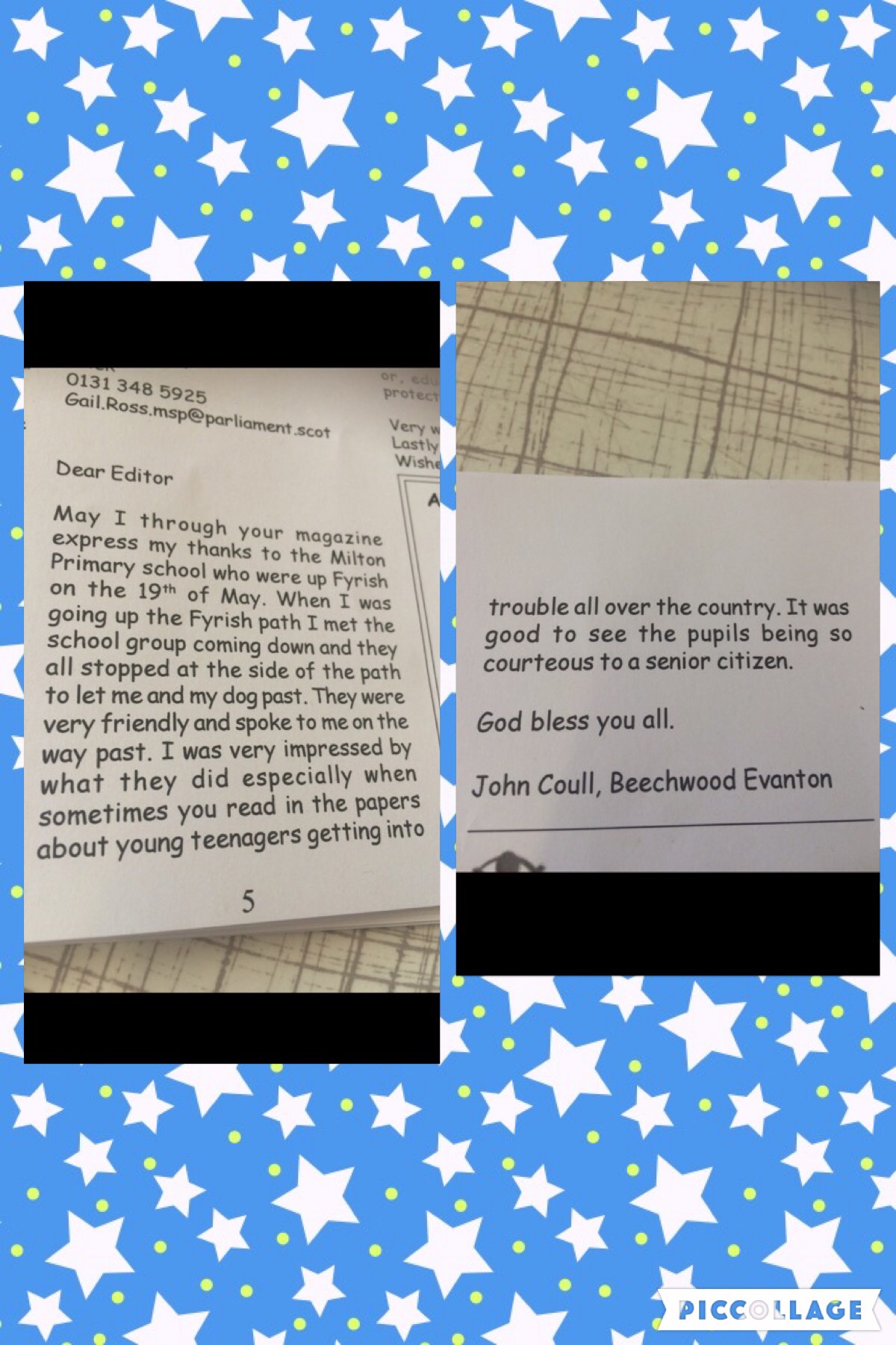 Categories Uncategorized Big Compliment for P6/7! Post author By Milton Primary Post date June 3, 2016 Well done boys and girls. Very kind of Mr Coull to acknowledge your manners 👍💝 Related ← New library taking shape! → Posh Picnic Lunch