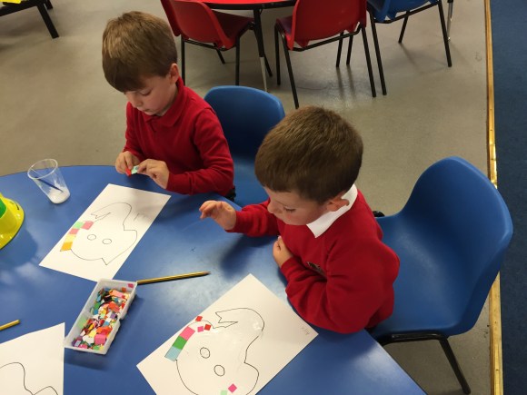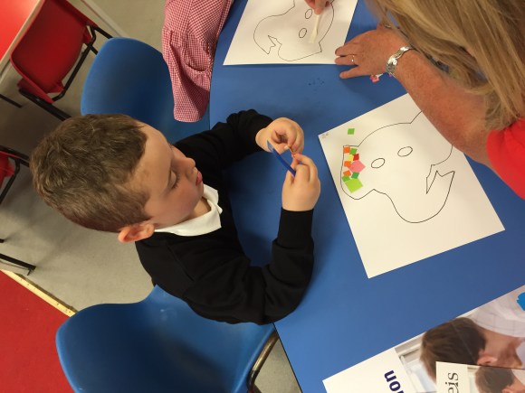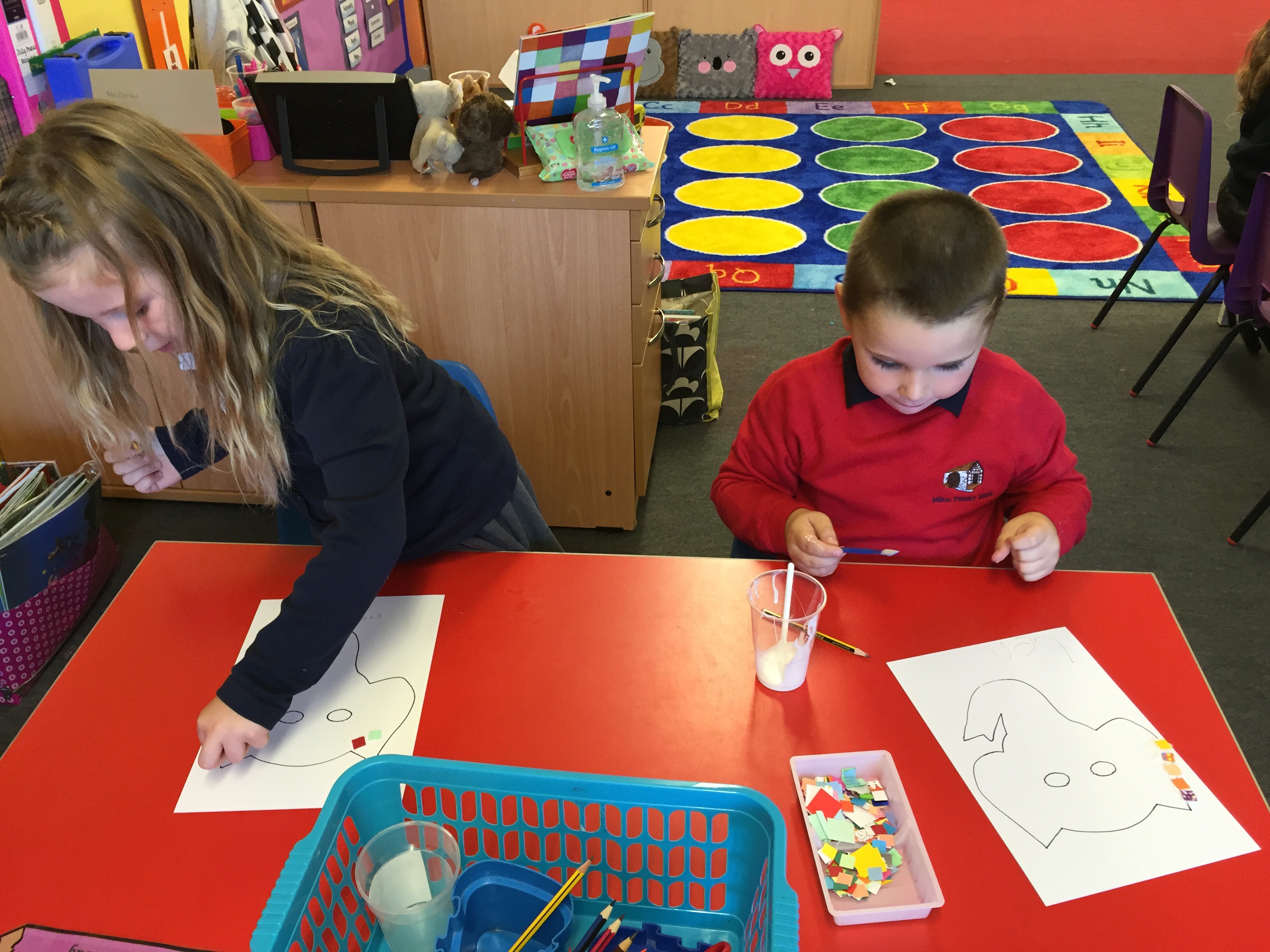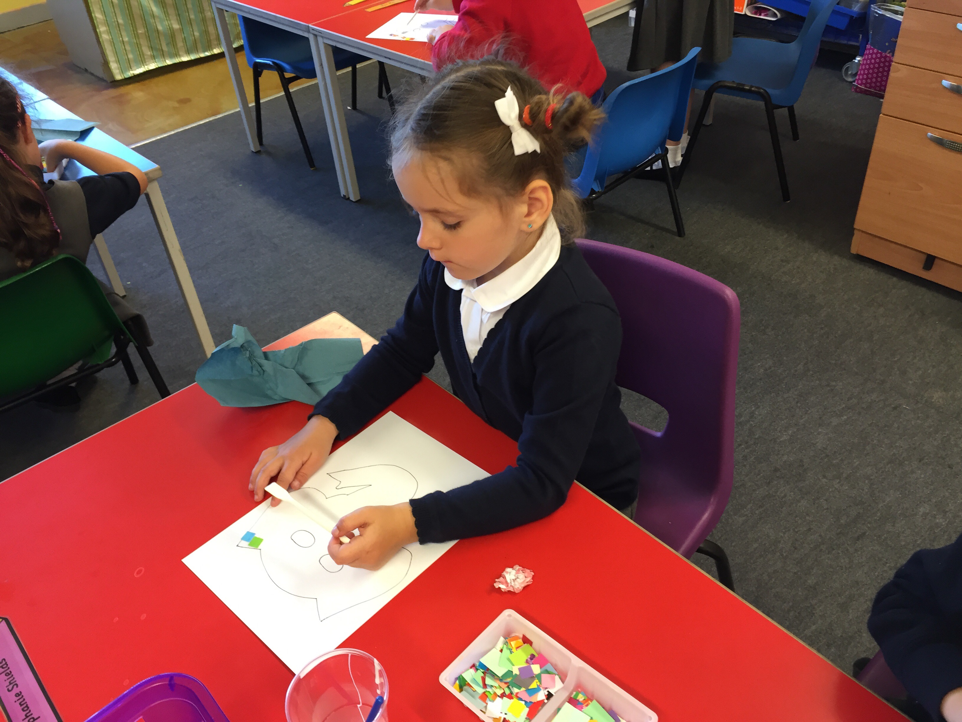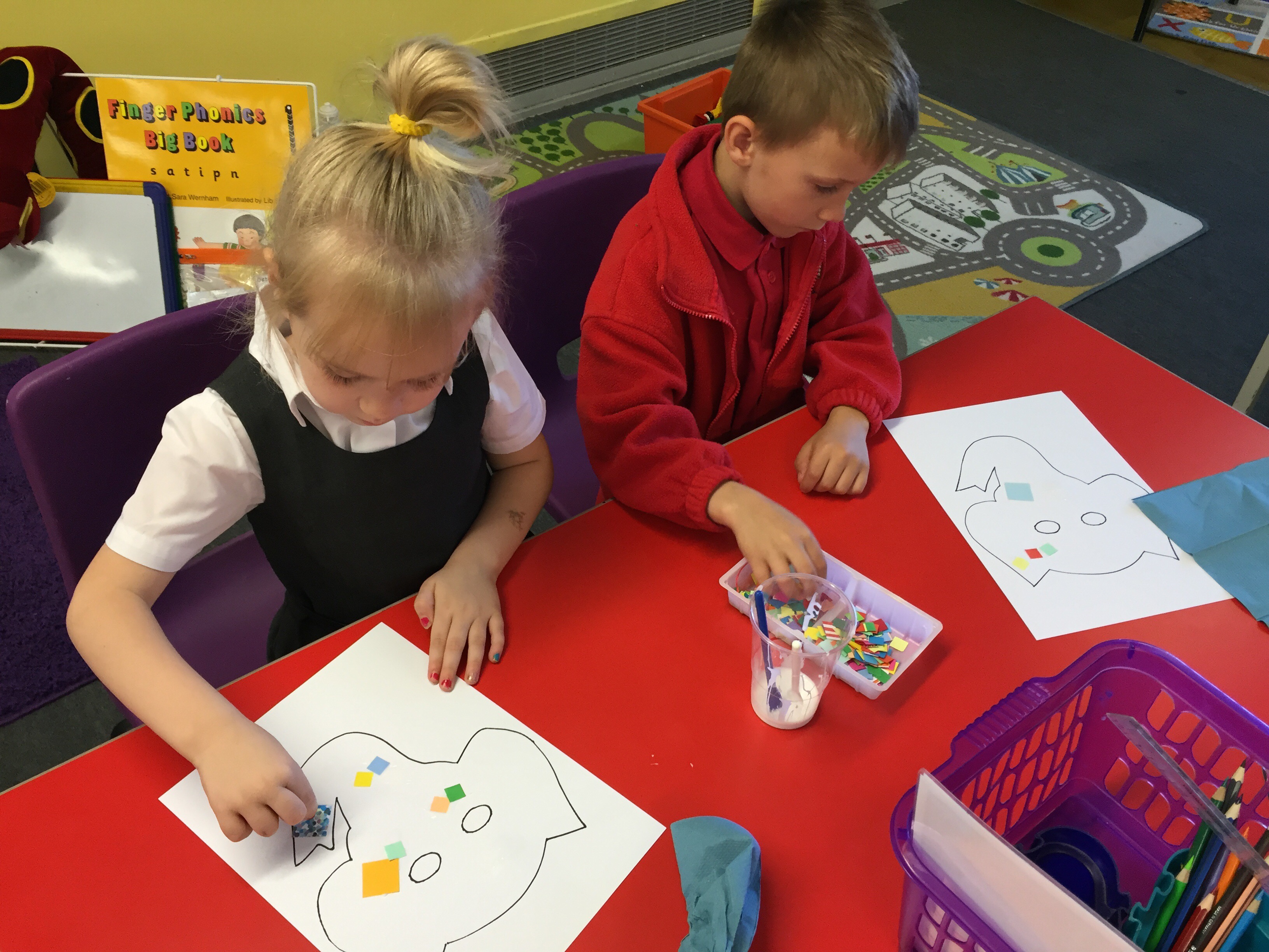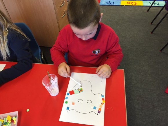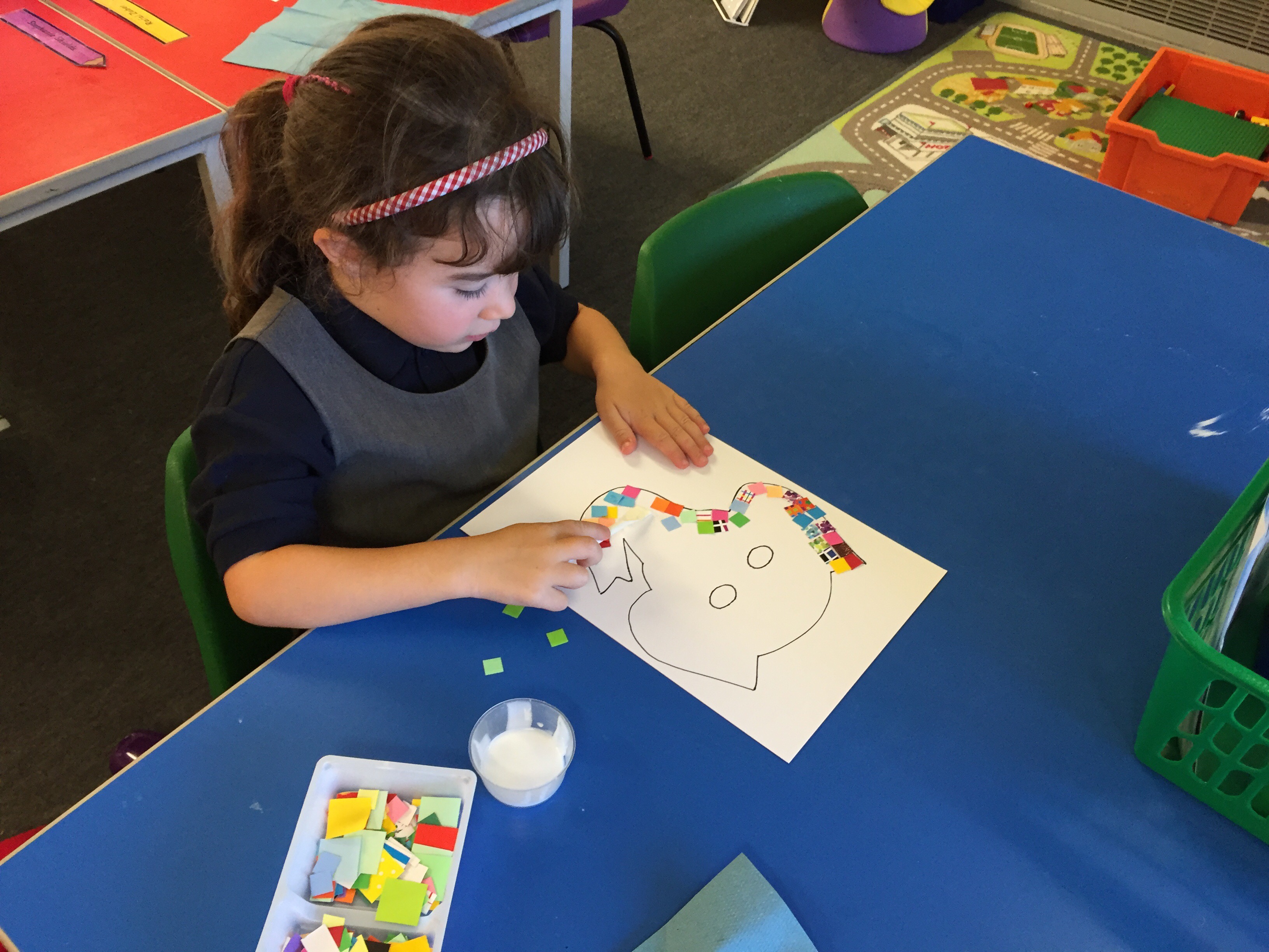 After play time we brushed our teeth and then read all about Elmer, a very unique elephant. We decided to become like Elmer. Here are the beginnings of our masks which we will finish tomorrow.