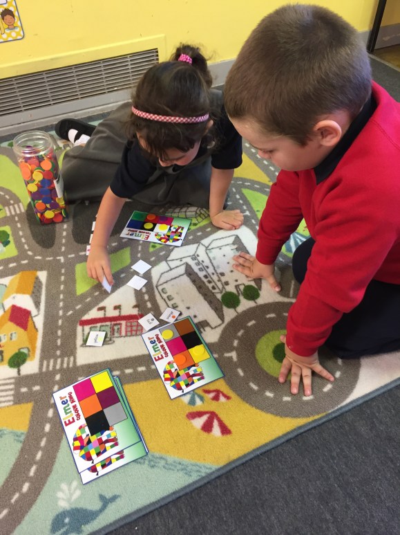Abigail and Ben enjoyed playing Elmer Bingo to make sure they knew their colours! They worked very hard to share and take turns.
