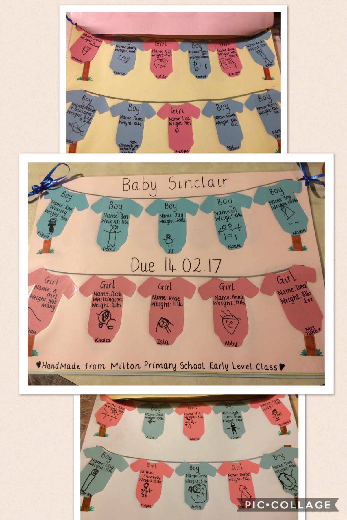 The boys and girls have all made some brilliant name suggestions and tried to guess the weight of the baby. A 20lb boy called Dick Whittington could be an interesting combination.