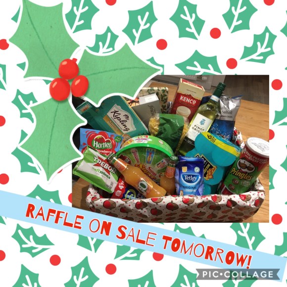 The Christmas raffle will be on sale tomorrow during Christmas lunch and each day at the office until the big draw on Friday 20th December. We have a food and drinks hamper up for grabs and various other prizes including: chocolates, wine, body shop set, next room fragrance…