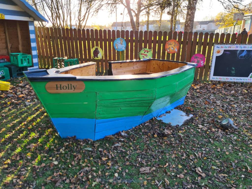 A huge thank you to the Men Shed who worked so hard to build, paint, varnish and deliver the structure. Thanks must also go to the Highland Council members of staff who supported the boat to sail into the Nursery garden. The children, alongside Mrs Forth and Mrs June, chose the name Holly for the boat – their former teacher and co-worker. Mrs Forth got in touch with Miss Ross who was just delighted at the gesture.