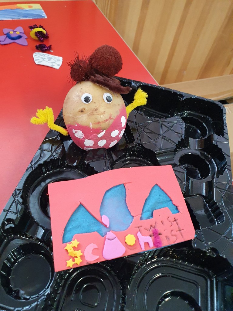 Primary 3/4/5 were tasked with a creativity challenge – turning a potato into a book character. They come complete with labels but I bet you guessed who lots of them were before seeing the label.