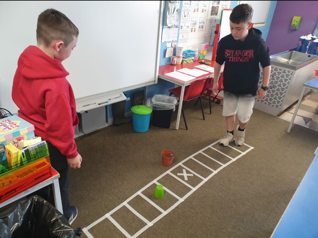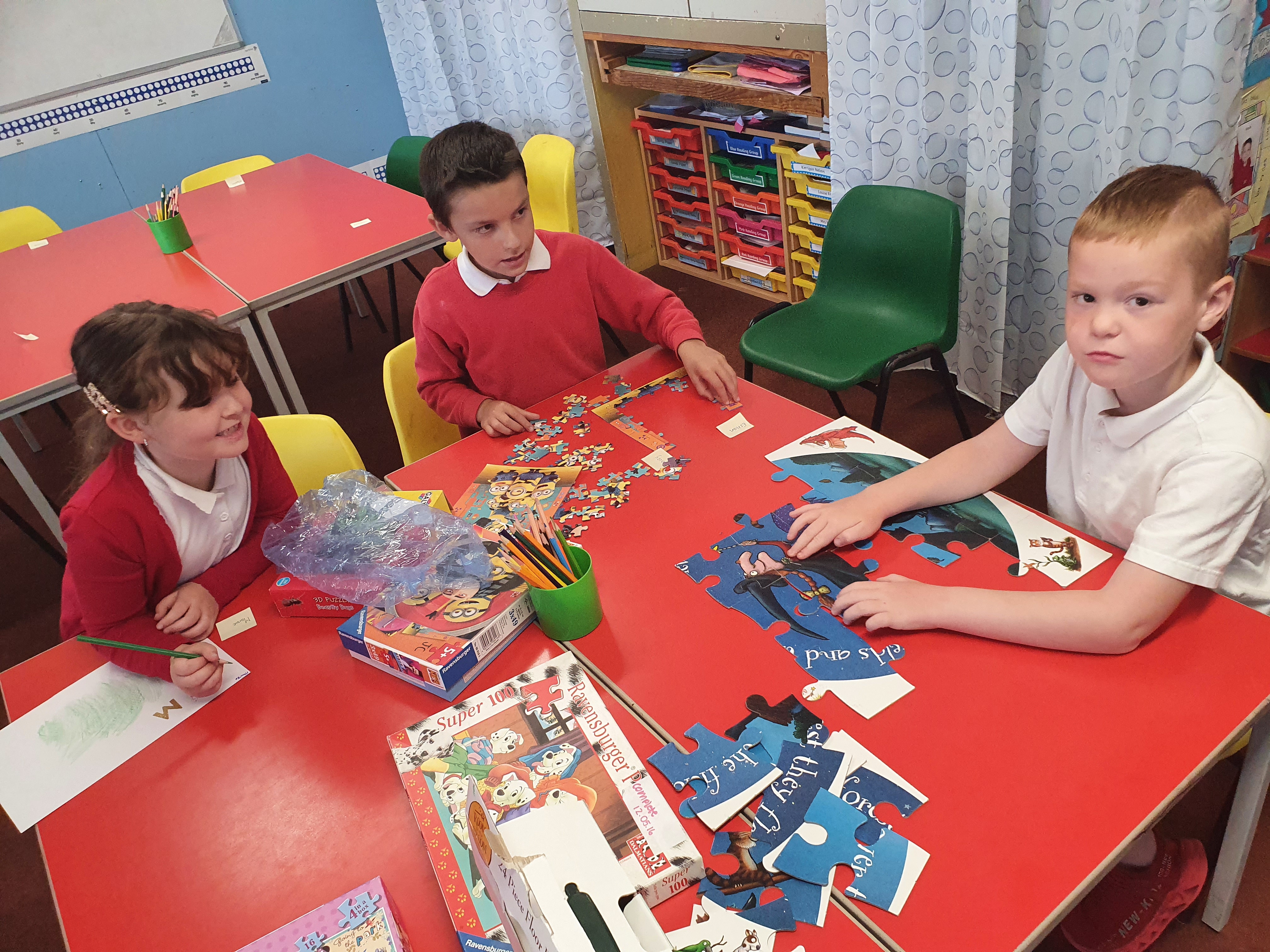 There was lots of fun to be had outdoors at break time too. There was lots going on from space hoppers to football to ‘cops and robbers’. Mrs Martin took good care of them in the afternoon – they helped to take care of the plants in the playground and polytunnel. Hopefully we remember to keep checking on everything next week for Mrs Martin.