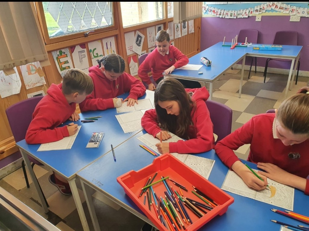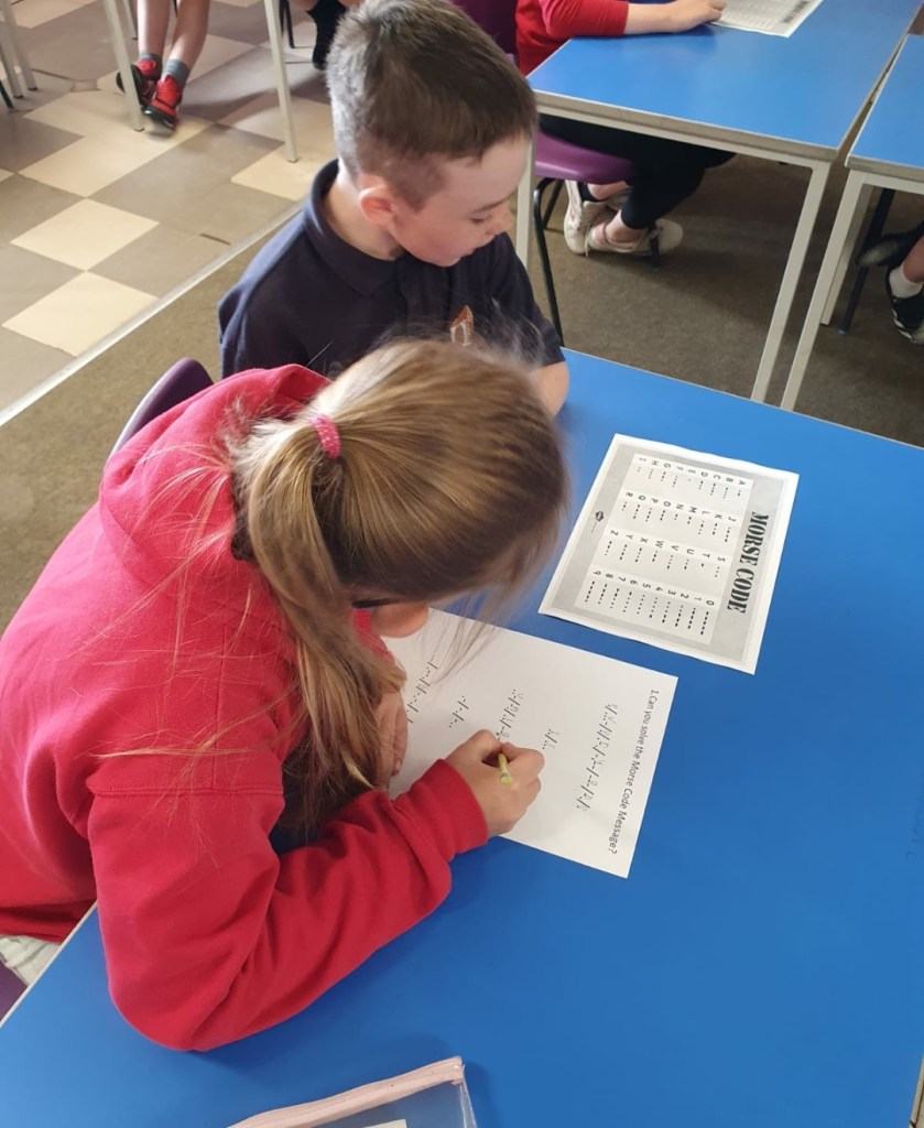 P567 spent the morning doing a selection of games, jigsaws, wordsearches or colouring before settling in to a flags of the world quiz on a new website called blooket. They linked the task to the current class topic of WW2 and solved some morse code to find the phrases ‘Don’t compare yourself to others’ and ‘Everyone is unique and special’ before colouring their own unique fish for a wall display.