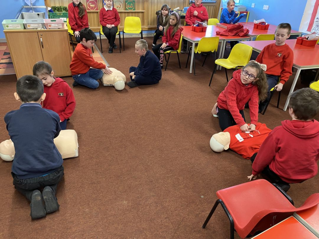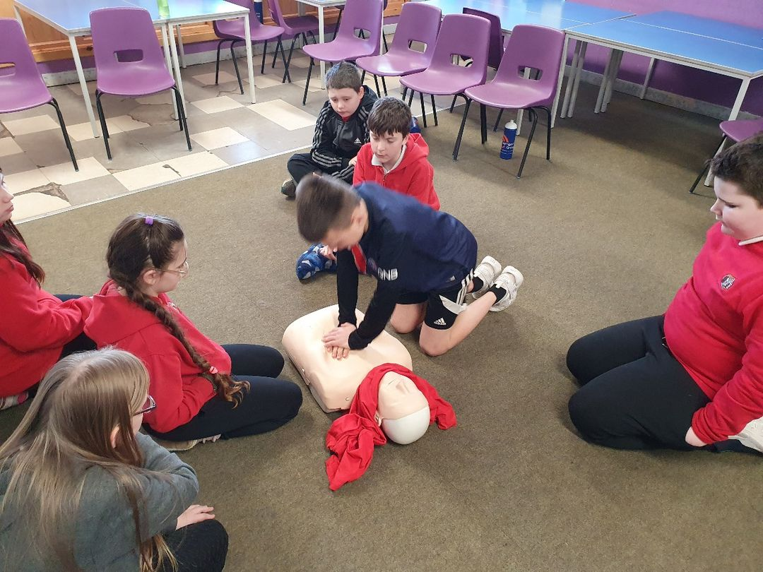 David came and spoke to all of the classes. He told us all about why it is important that we know basic first aid skills and how they could save someone’s life. He taught us who to phone if we come across someone unconscious, how to check if a person is breathing and how to put them into the recovery position whilst we wait on an ambulance to come. He also taught us how to perform CPR if the person is not breathing. I think we all agreed that CPR is hard work!
