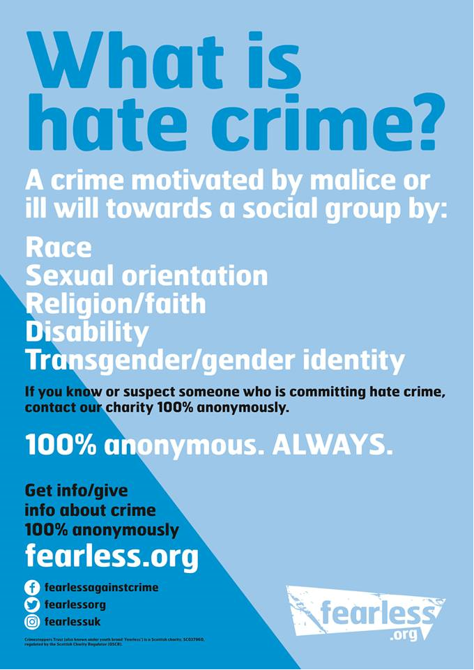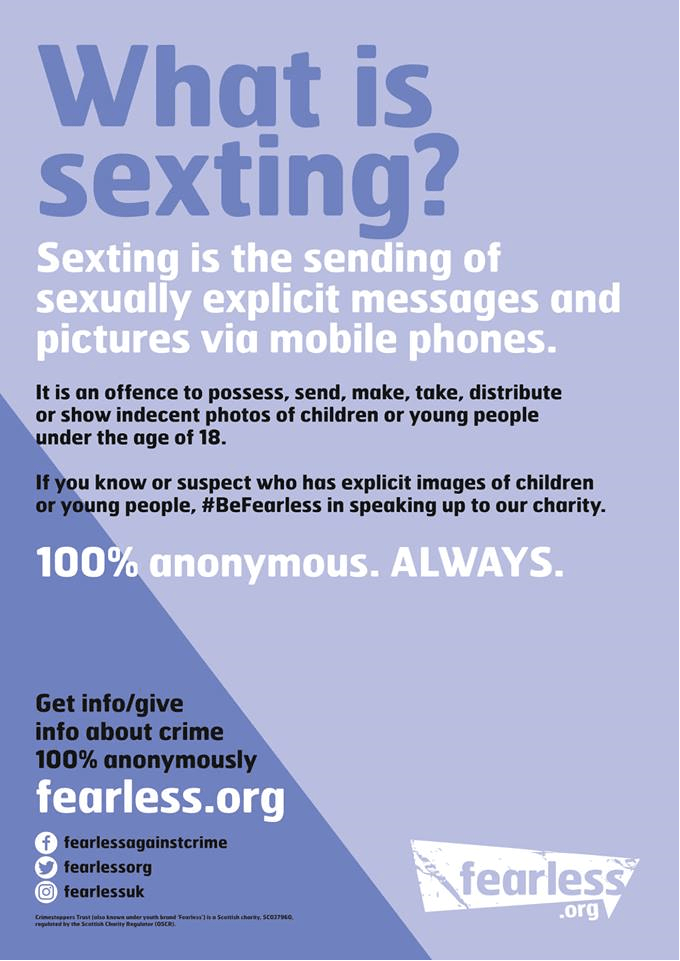 We are aware that there have been a number of concerns raised about the community in the past couple of weeks. We have spoken to our local Police Liaison Officer and it has been advised that an effective way to report or share these concerns is to use the Fearless reporting system as well as reporting to the relevant professionals, Social Work, Police etc.