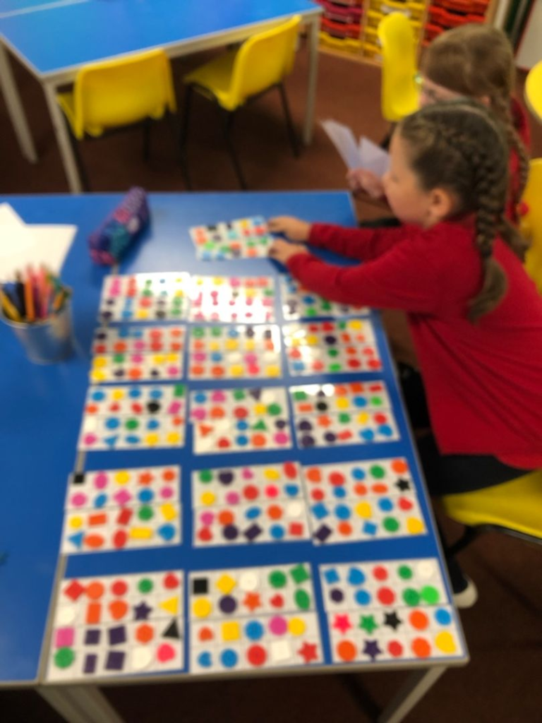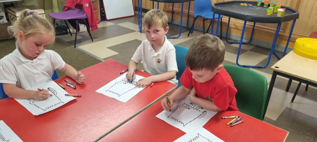 Maths in P123 with Miss RostockThe boys and girls in the nursery enjoyed exploring the obstacle course this morning and were practising their balancing skills.This week our new P1s started to look at how to write the sounds we’ve been learning. It’s trickier than it looks!P123 read ‘The Colour Monster’ and then created a monster based on how we were feeling.
