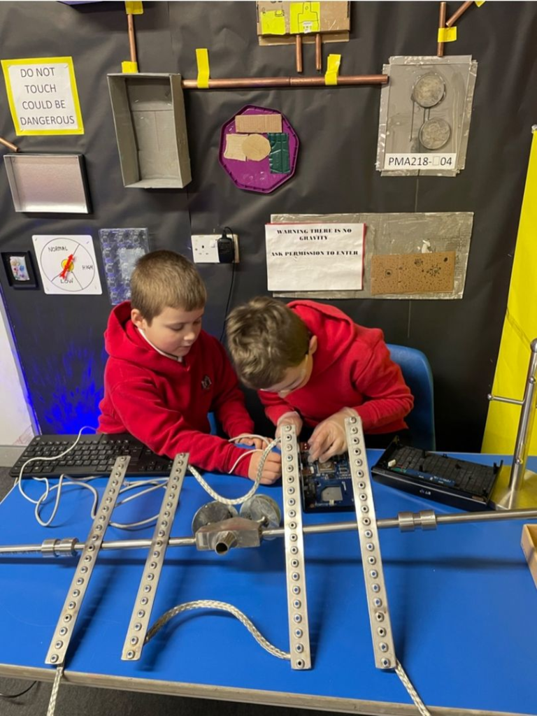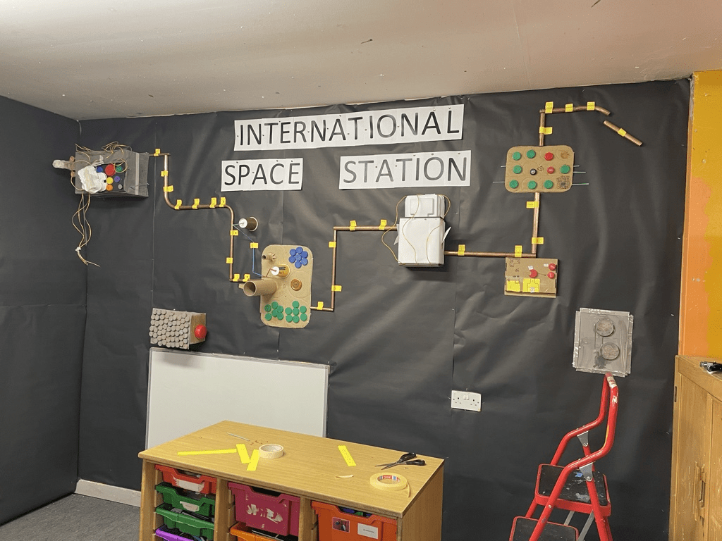 To start, the children were tasked with creating a panel for the space station for Technology using a range of joining techniques (rather than a whole roll of sellotape.)