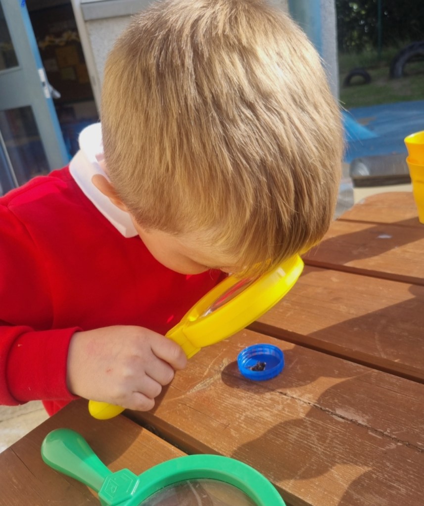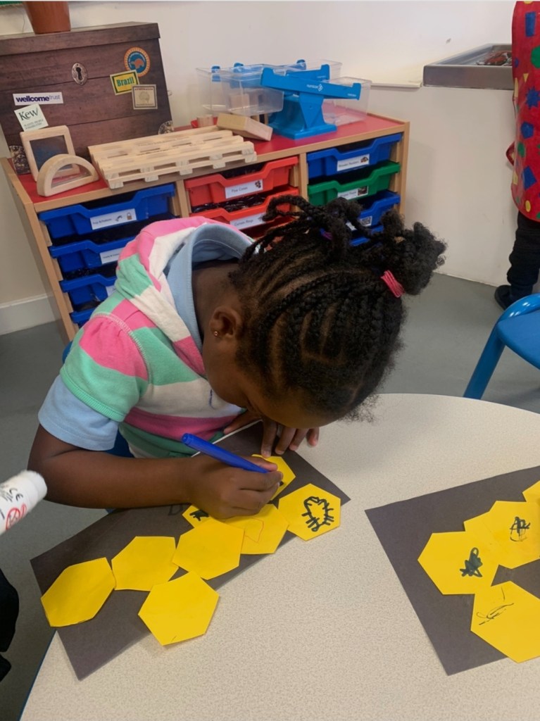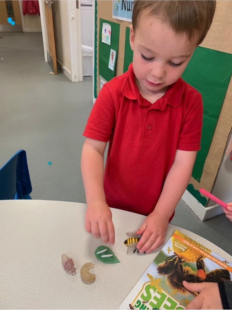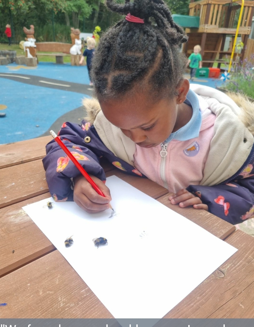 The nursery children have shown an interest in the buzzy bees who have been visiting the beautiful flowers in their garden. The staff have supported the children and planned experiences to move their learning forward in this interest. Have a look at the photographs to see what they’ve been getting up to.